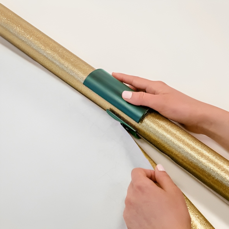 Our Gliding Wrapping Paper Cutter is intelligently designed to slide the blade along the paper in one motion. The cylinder shape allows the tool to tightly fit around the paper. Then all you do is slide. It’s that easy!